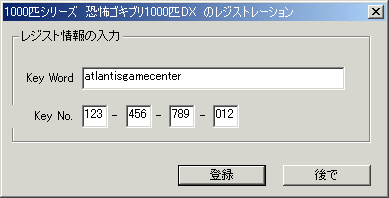 登録ツールが起動したら、以下の例のようにお手持ちのキーワード、キーナンバーを